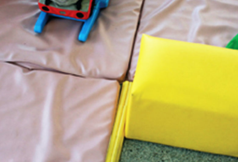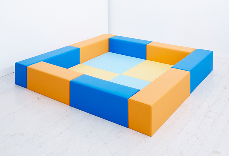キッズコーナーの構造的には大きく分けて、2種類あります。まず1つ目は緩衝材にビニールレザー(PVC)やターポリン(テント素材)で覆い被せただけのもの。2つ目は芯材(木枠構造)に緩衝材を張り付けてビニールレザー(PVC)やターポリン(テント素材)をタッカーを用い椅子張り加工したもの。下記にてそれぞれの特徴を説明いたします。