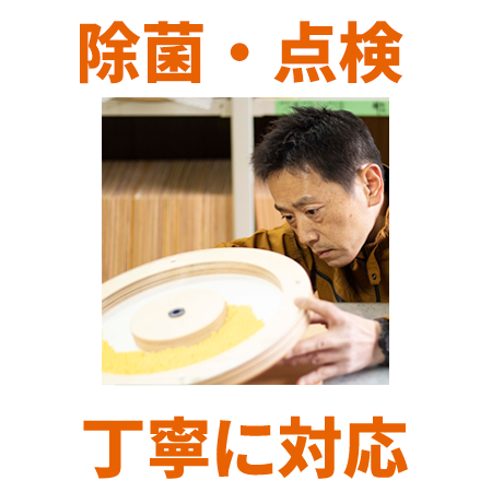 お子様が直接手に触るものだから、レンタル終了時には専門スタッフが品質(ズレやガタなど)の品質をしっかりメンテナンスした上で、徹底的に除菌して再出荷します。